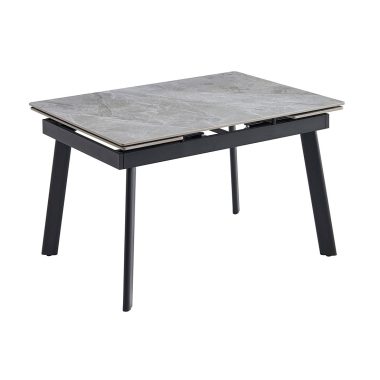 Этот обеденный стол – прекрасное решение для ежедневного комфорта. Его керамическая столешница украшена элегантным узором белого мрамора с серыми прожилками. Керамика отличается чрезвычайной прочностью, стойкостью к царапинам, пятнам и высоким температурам, поэтому такая поверхность прекрасно подходит для активного ежедневного использования. Черные металлические ножки обеспечивают устойчивость конструкции. А благодаря двум выдвигающимся