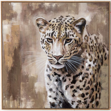 Этот увлекательный портрет леопарда излучает мощь и сосредоточенность. Картина создана полностью ручным способом на холсте, благодаря чему каждый мазок кисти добавляет уникальную текстуру и живую энергию. Палитра преимущественно состоит из теплых коричневых, бежевых и охристых тонов, которые воспроизводят природную среду и подчеркивают пятнистый узор. Экспрессивный фон отлично контрастирует с детализированным