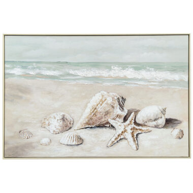 Эта картина перенесет вас на побережье, наполняя пространство атмосферой морской свежести и покоя. Основание изображения выполнено методом цифровой печати и воспроизводит нежную палитру песчаного пляжа и волнистого моря в светло-мятных и бежевых тонах. Затем художник вручную нанес краски, которые придали объем и реалистичность волнам, песку и деталям морских ракушек и