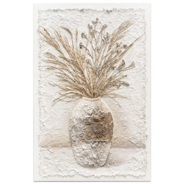 Эта рельефная картина привлекает внимание выразительным объемом, достигнутым благодаря ручной работе на холсте. В центре – элегантный белый лист, который выделяется на более темном фоне, наполняя пространство легкостью. Рельефная поверхность приглашает прикоснуться, превращая картину в особый элемент декора. Работа обрамлена лаконичной рамой под светлое дерево, идеально гармонирующей с естественной тематикой