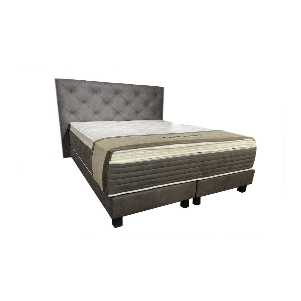 Эта кровать поможет вам создать изысканный интерьер. Ее дизайн разработан экспертами и продуман до мелочей. Высокое изголовье прошито объемной стяжкой и декорировано тонким выступающим кантом, образующим на его поверхности ромбовидный узор. Корпус кровати обит искусственным нубуком благородного серого цвета, который идеально подойдет и для женской, и для мужской спальни. Кровать стоит на небольших черных ножках, которых почти не видно из-под корпуса.